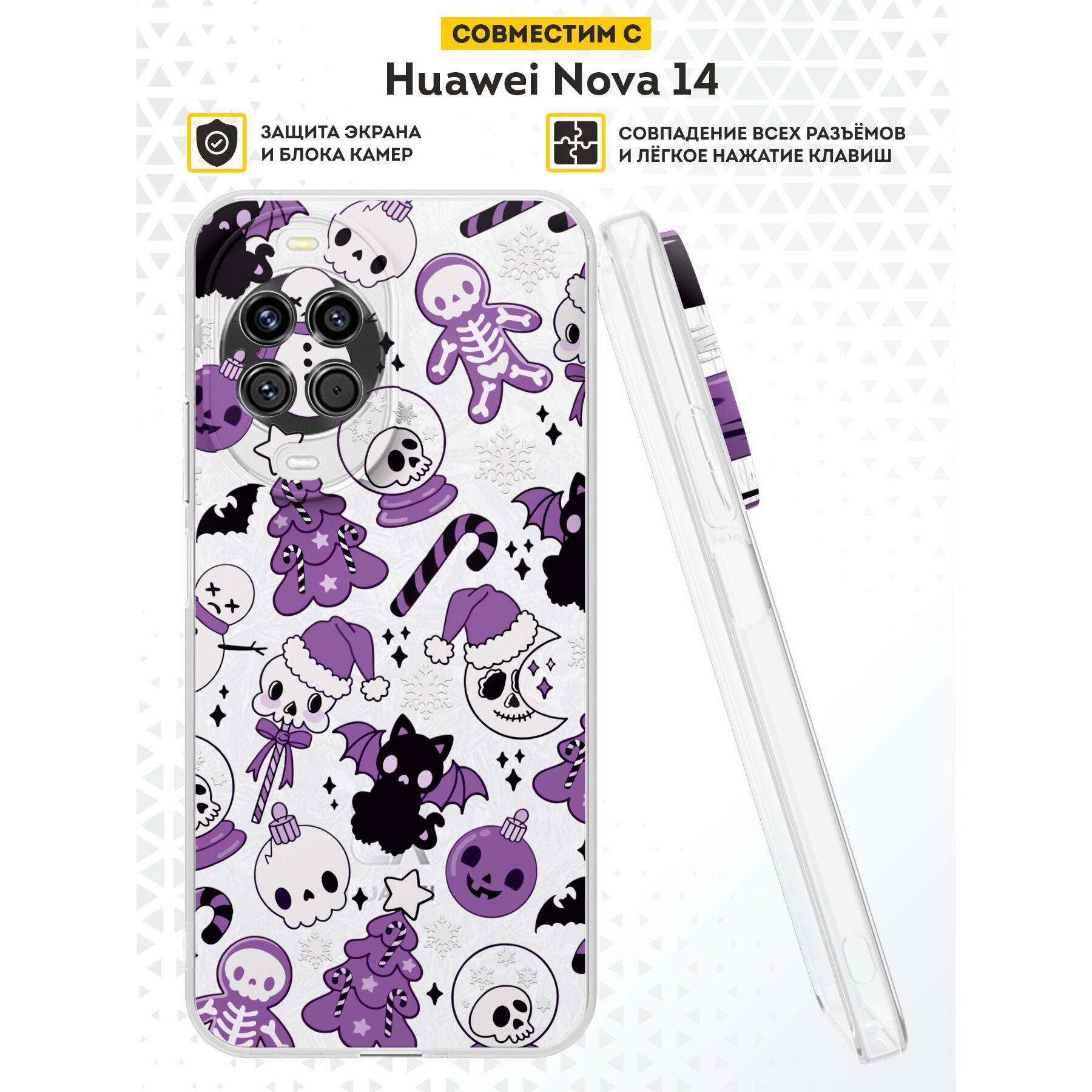 Силиконовый чехол DesignOnCase на Huawei Nova 14, с принтом Новогодний, Котята, Черепа, Скелет