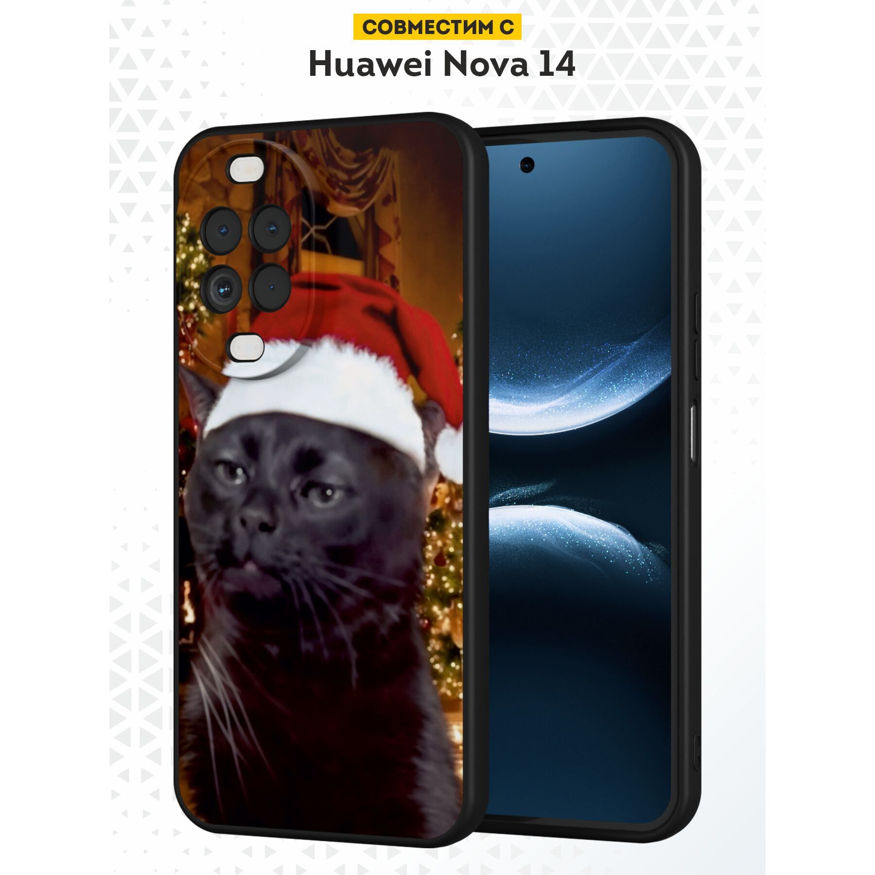 Силиконовый чехол DesignOnCase на Huawei Nova 14, с принтом Новогодний, Мемный кот