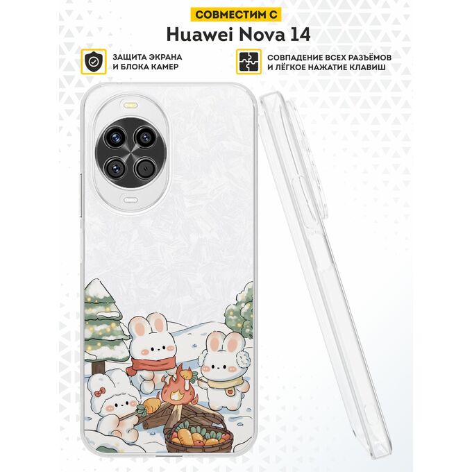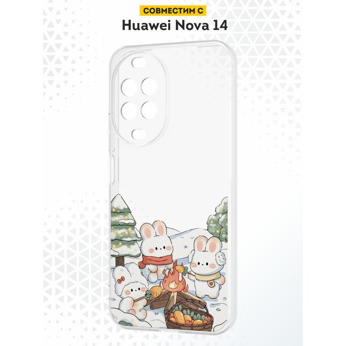 Силиконовый чехол DesignOnCase на Huawei Nova 14, с принтом Новогодний, Зайцы, Кролики