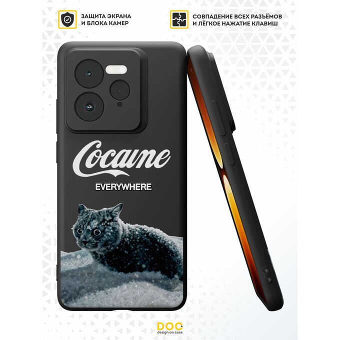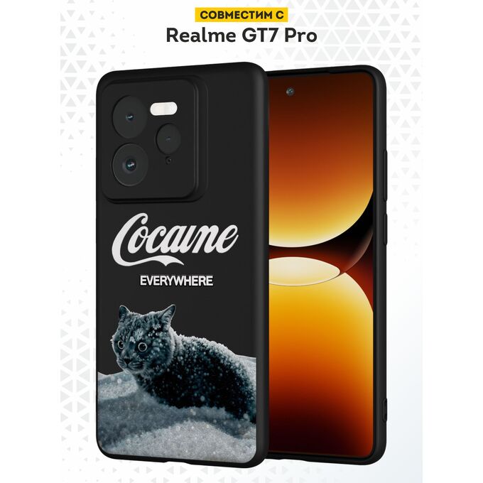 Силиконовый чехол DesignOnCase на Realme GT7 Pro, черный, с принтом Кот и кокаин (не публиковать)