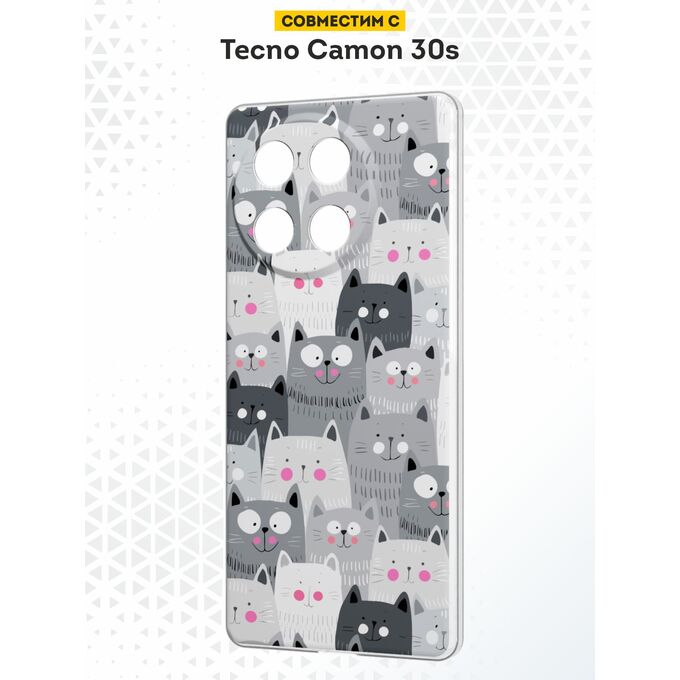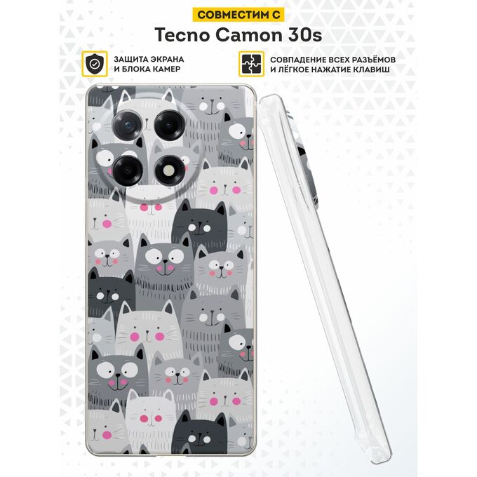 Силиконовый чехол DesignOnCase на Tecno Camon 30s / 30s Pro, с защитой камеры, Довольные коты