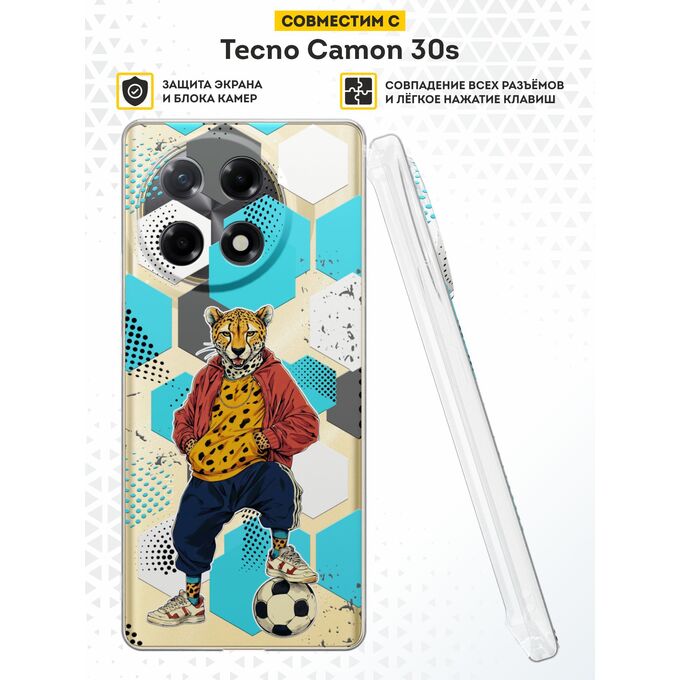 Силиконовый чехол DesignOnCase на Tecno Camon 30s / 30s Pro, с защитой камеры, Гепард футболист