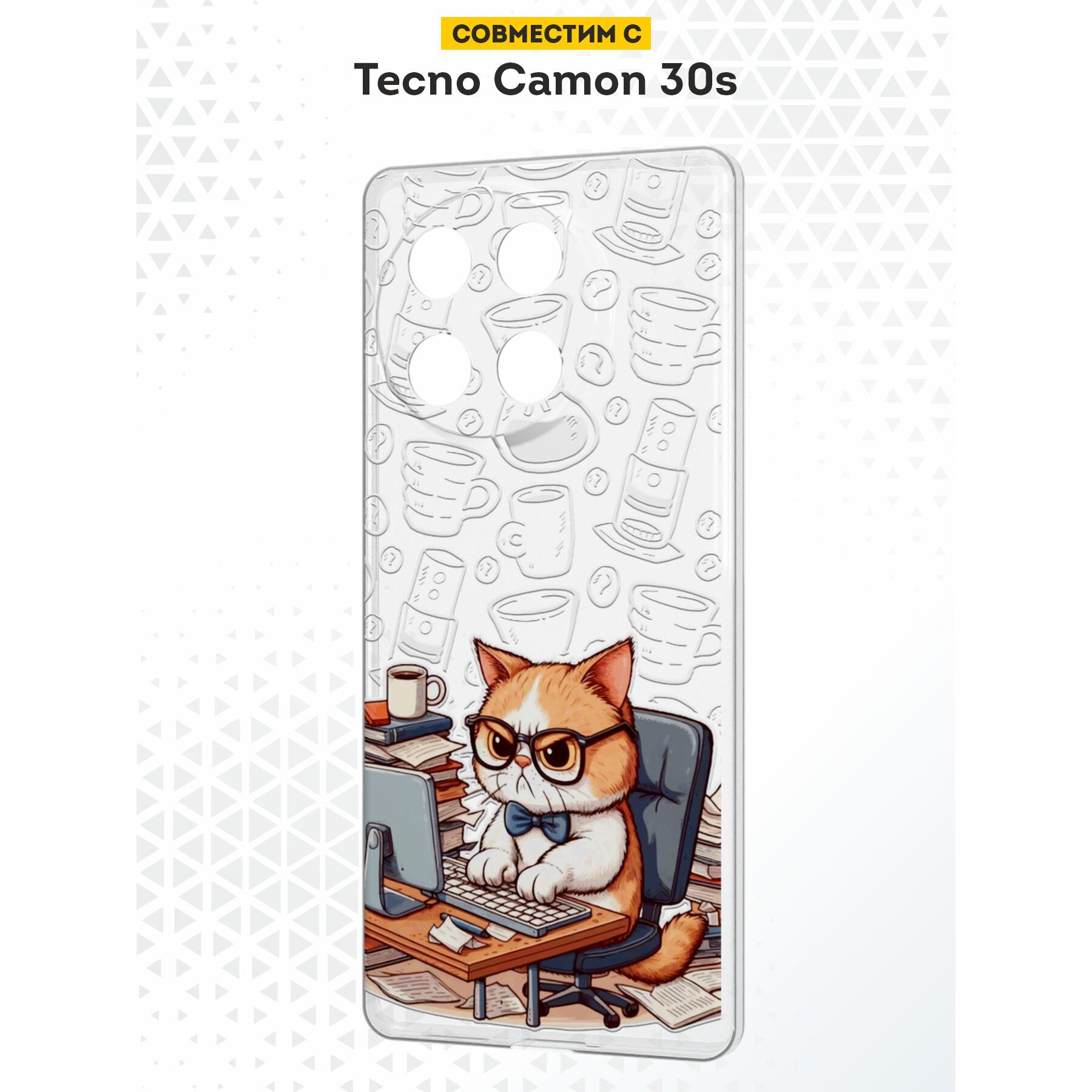 Силиконовый чехол DesignOnCase на Tecno Camon 30s / 30s Pro, с защитой камеры, Кот работяга