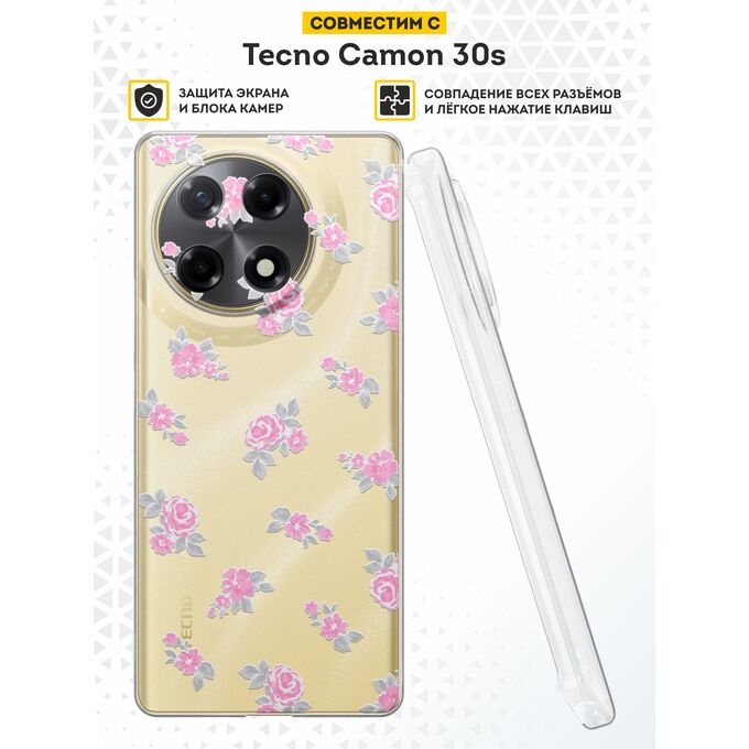 Силиконовый чехол DesignOnCase на Tecno Camon 30s / 30s Pro, с защитой камеры, Маленькие розы