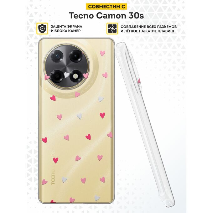 Силиконовый чехол DesignOnCase на Tecno Camon 30s / 30s Pro, с защитой камеры, Множество сердечек