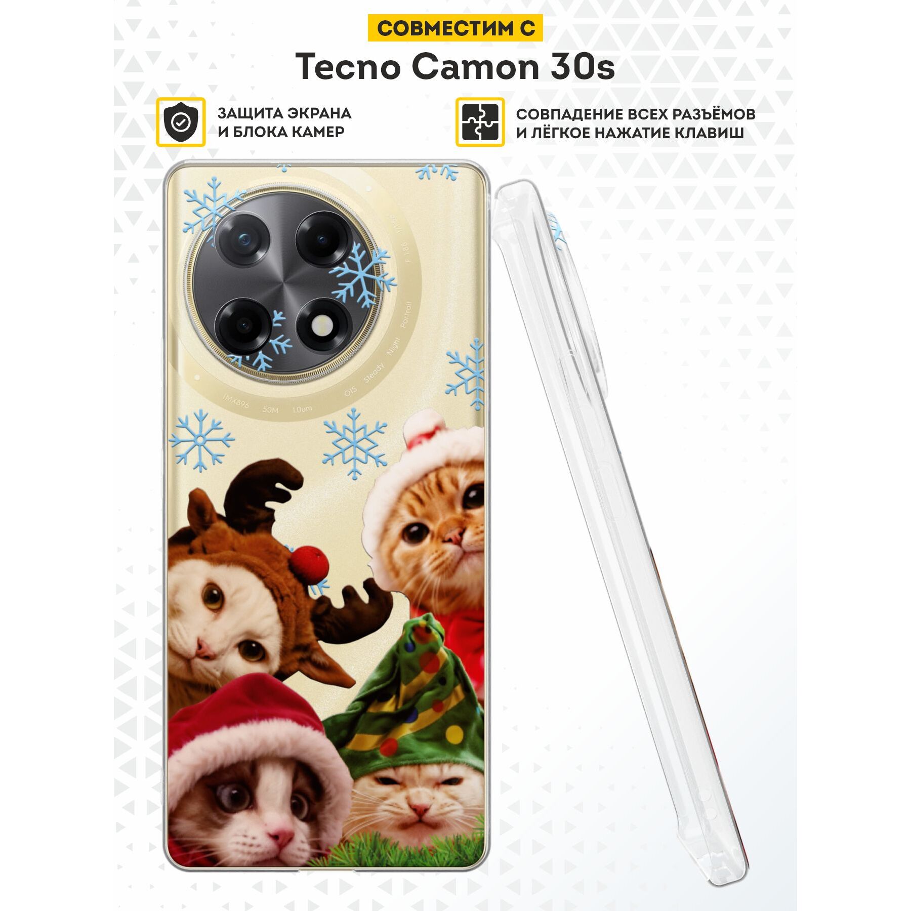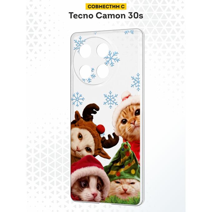 Силиконовый чехол DesignOnCase на Tecno Camon 30s / 30s Pro, с защитой камеры, НГ кошачья туса