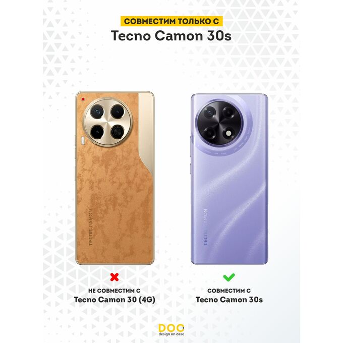 Силиконовый чехол для смартфона Tecno Camon 30s - это стильное дополнение и надежная защита для вашего смартфона. Изготовлен из прочного силикона, который устойчив к потертостям, царапинам, и другим повреждениям, что даёт вам возможность на долгий срок службы устройства. Дизайн чехла придется по вкусу самым требовательным покупателям. Наша команда дизайнеров создает уникальные принты и рисунки, которые не оставят равнодушными окружающих. Благодаря износостойким краскам и лакам, он всегда будет выглядеть свежим и новым даже после длительной эксплуатации. Особенностью чехла от бренда DesignOnCase является его идеальное прилегание к смартфону, повторяющее его контуры. Это обеспечивает не только эстетичный вид, но и полный доступ к функциям и портам вашего телефона.