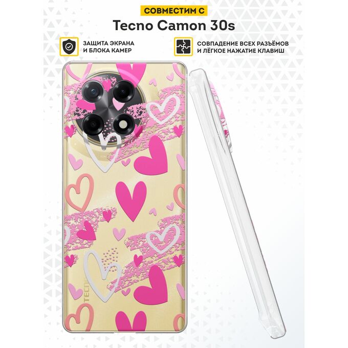 Силиконовый чехол DesignOnCase на Tecno Camon 30s / 30s Pro, с защитой камеры, Разноцветные сердца