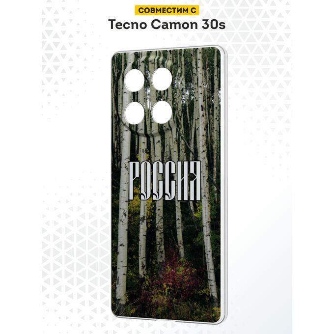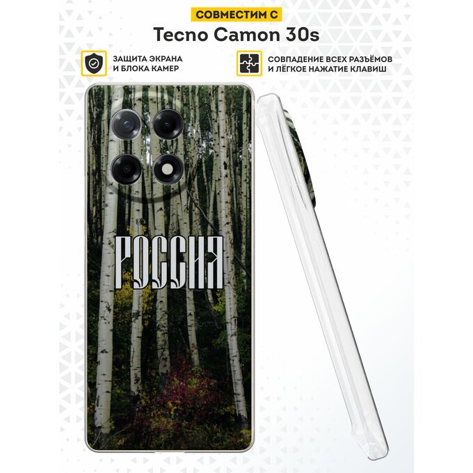 Силиконовый чехол DesignOnCase на Tecno Camon 30s / 30s Pro, с защитой камеры, Россия и берёзы