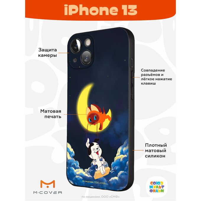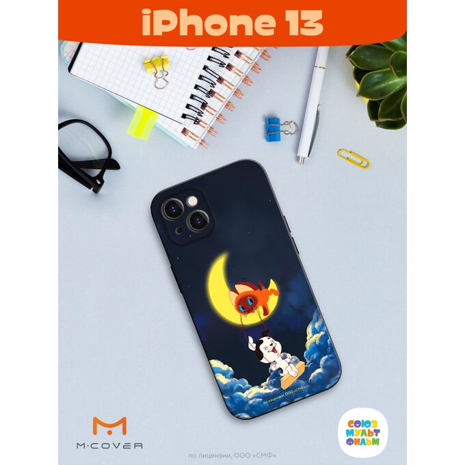 Силиконовый чехол Mcover для iPhone 13 (Айфон 13 ), Союзмультфильм, Котенок по имени Гав, Лунные качели