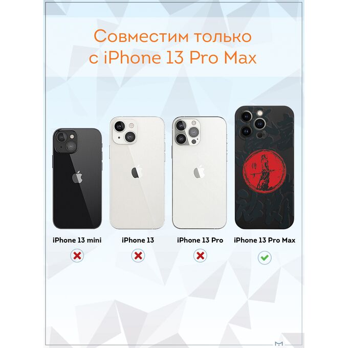 Чехол для смартфона iPhone 13 Pro Max - неотъемлемый аксессуар каждого современного человека. Премиальные износостойкие краски и лаки, качественные материалы изделия, японское оборудование и контроль качества производства - это то, что позволяет нам выгодно выделяться среди конкурентов и производить не только красивые, но тактильно приятные чехлы для Айфон 13 Про Макс, которые долгое время не теряют первоначального вида.