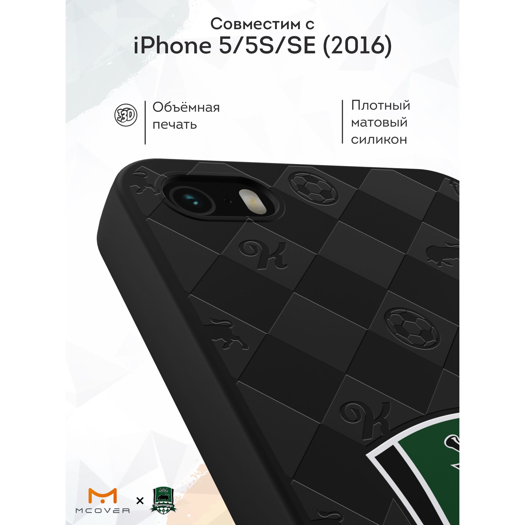 Силиконовый чехол Mcover для Apple iPhone 5/5s/SE / на Айфон 5 5с СЕ(2016), Герб ФК Краснодар на черной клетке
