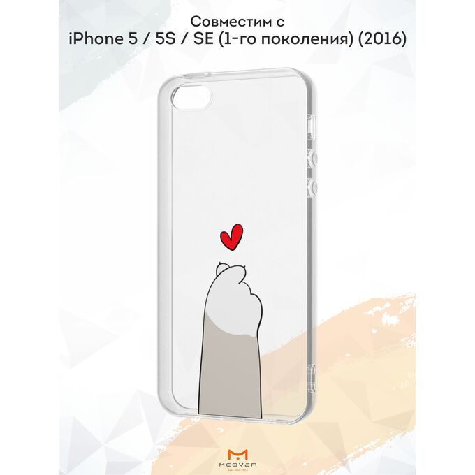 Силиконовый чехол Mcover для Apple iPhone 5/5s/SE / на Айфон 5 5с СЕ(2016), Лапка с сердцем