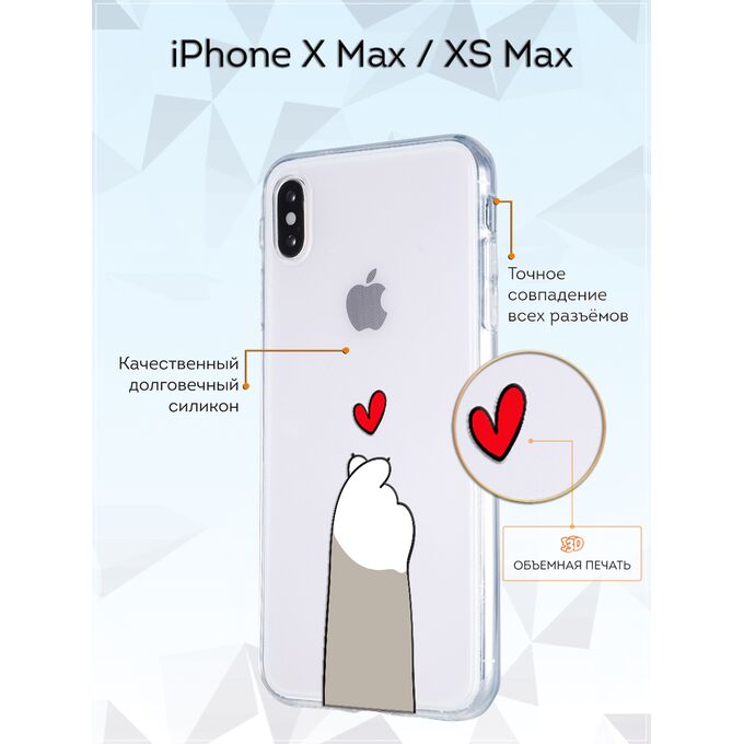 Силиконовый чехол Mcover для Apple iPhone XS Max / на Айфон Икс Эс Макс, Лапка с сердцем