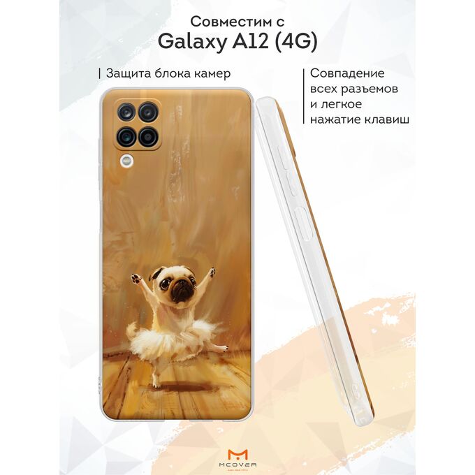Силиконовый чехол Mcover для Galaxy A12 (Галакси А12), Pug ballerina