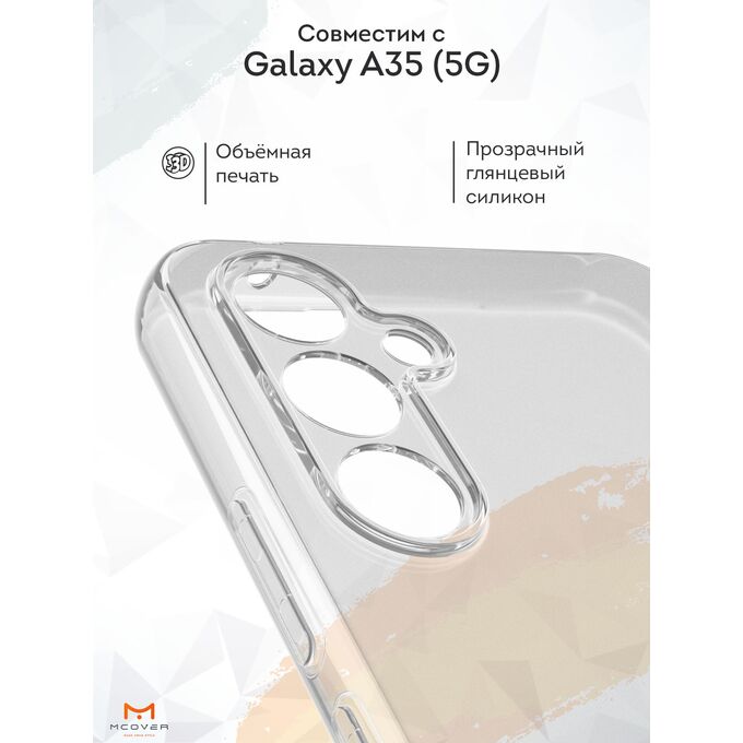 Силиконовый чехол для смартфона Galaxy A35 (5G) - это стильное дополнение и надежная защита для вашего смартфона. Изготовлен из прочного силикона, который устойчив к потертостям, царапинам, и другим повреждениям, что даёт вам возможность на долгий срок службы устройства. Дизайн чехла придется по вкусу самым требовательным покупателям. Наша команда дизайнеров создает уникальные принты и рисунки, которые не оставят равнодушными окружающих. Благодаря износостойким краскам и лакам, он всегда будет выглядеть свежим и новым даже после длительной эксплуатации. Особенностью чехла от бренда Mcover является его идеальное прилегание к смартфону, повторяющее его контуры. Это обеспечивает не только эстетичный вид, но и полный доступ к функциям и портам вашего телефона.