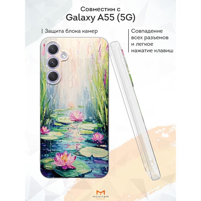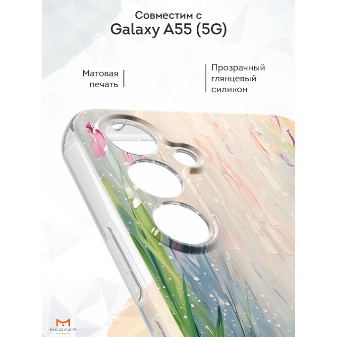 Силиконовый чехол для смартфона Galaxy A55 (5G) - это стильное дополнение и надежная защита для вашего смартфона. Изготовлен из прочного силикона, который устойчив к потертостям, царапинам, и другим повреждениям, что даёт вам возможность на долгий срок службы устройства. Дизайн чехла придется по вкусу самым требовательным покупателям. Наша команда дизайнеров создает уникальные принты и рисунки, которые не оставят равнодушными окружающих. Благодаря износостойким краскам и лакам, он всегда будет выглядеть свежим и новым даже после длительной эксплуатации. Особенностью чехла от бренда Mcover является его идеальное прилегание к смартфону, повторяющее его контуры. Это обеспечивает не только эстетичный вид, но и полный доступ к функциям и портам вашего телефона.