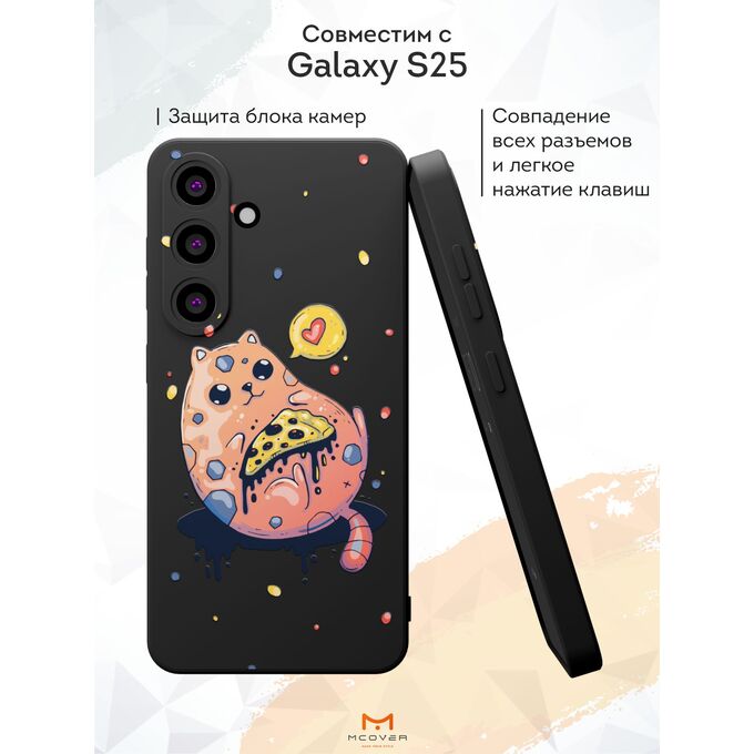 Силиконовый чехол Mcover для Galaxy S25 (Галакси С25), Космо-кот с пиццей