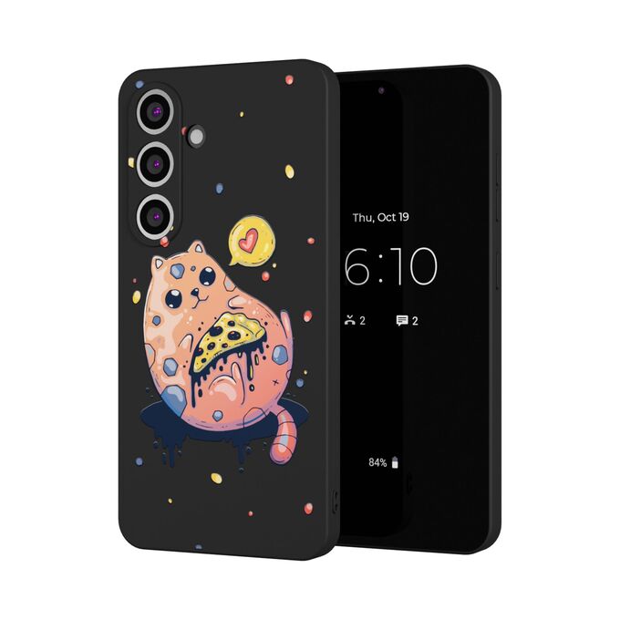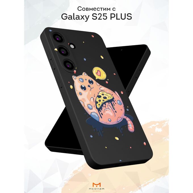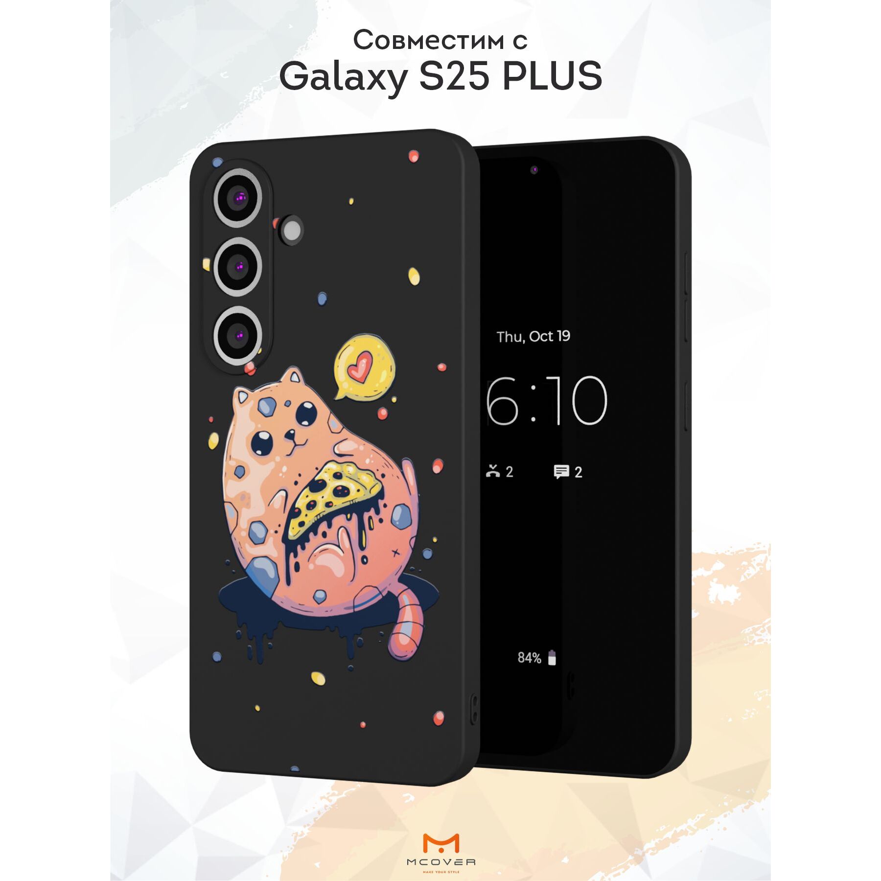 Силиконовый чехол Mcover для Galaxy S25 Plus (Галакси С25 Плюс), Космо-кот с пиццей