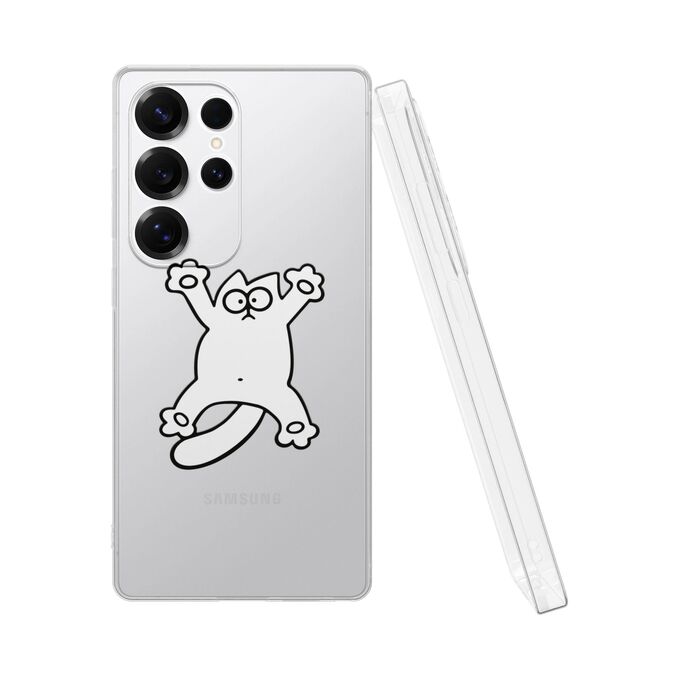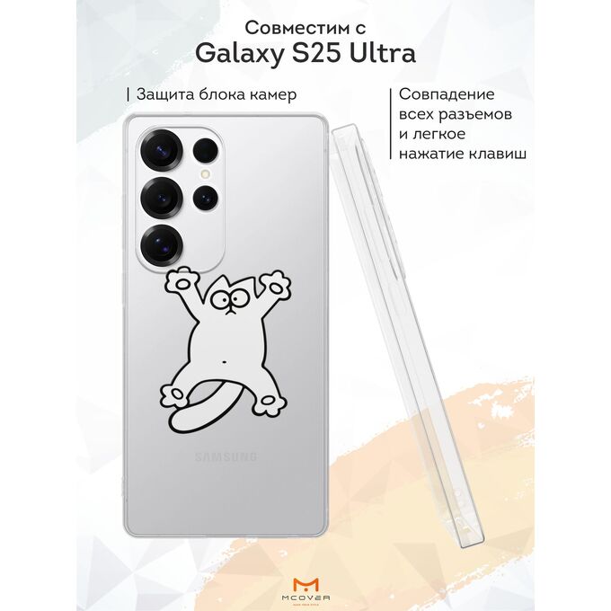 Силиконовый чехол Mcover для Galaxy S25 Ultra (Галакси С25 Ультра), Белый кот