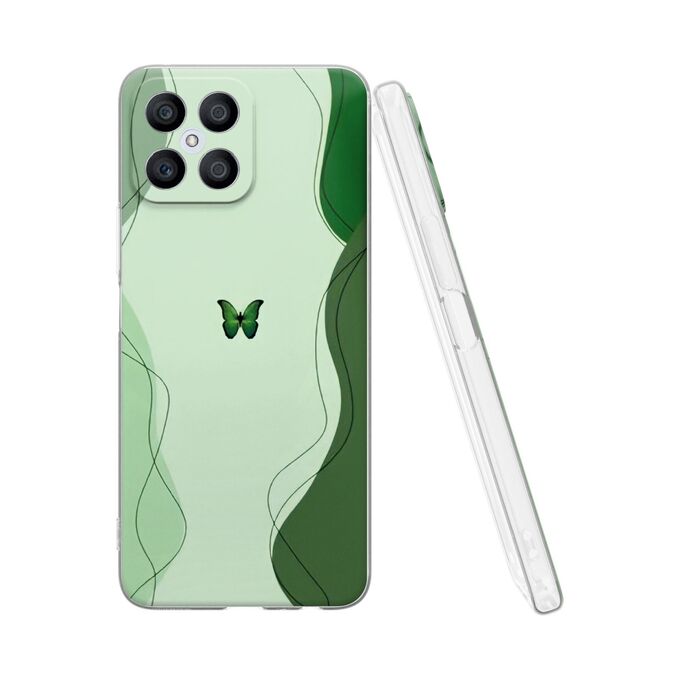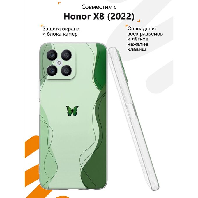 Силиконовый чехол Mcover для Honor X8 (Хонор Х8), Бабочка на зеленом
