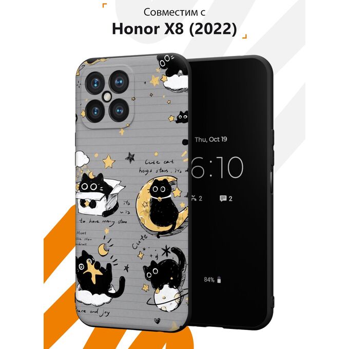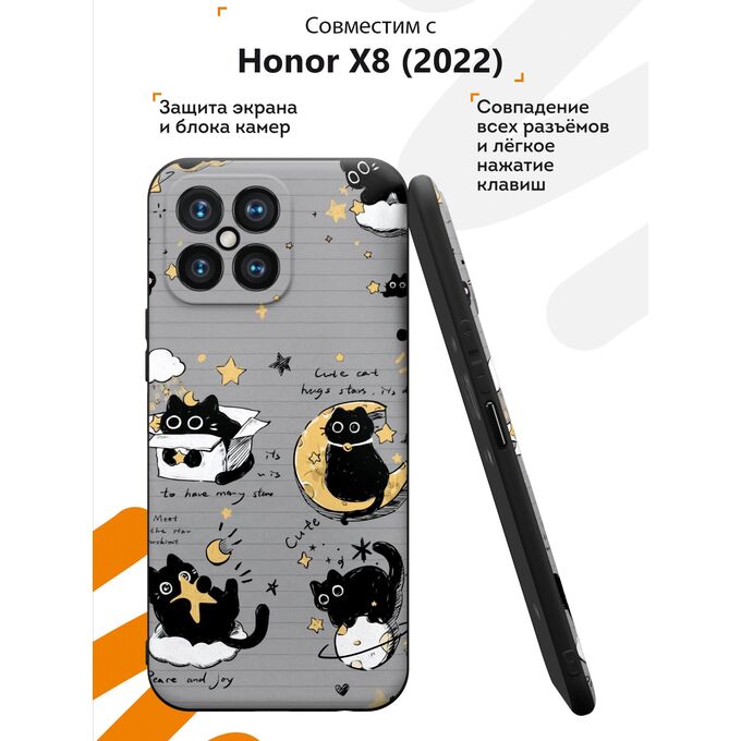 Силиконовый чехол Mcover для Honor X8 (Хонор Х8), Черный котик