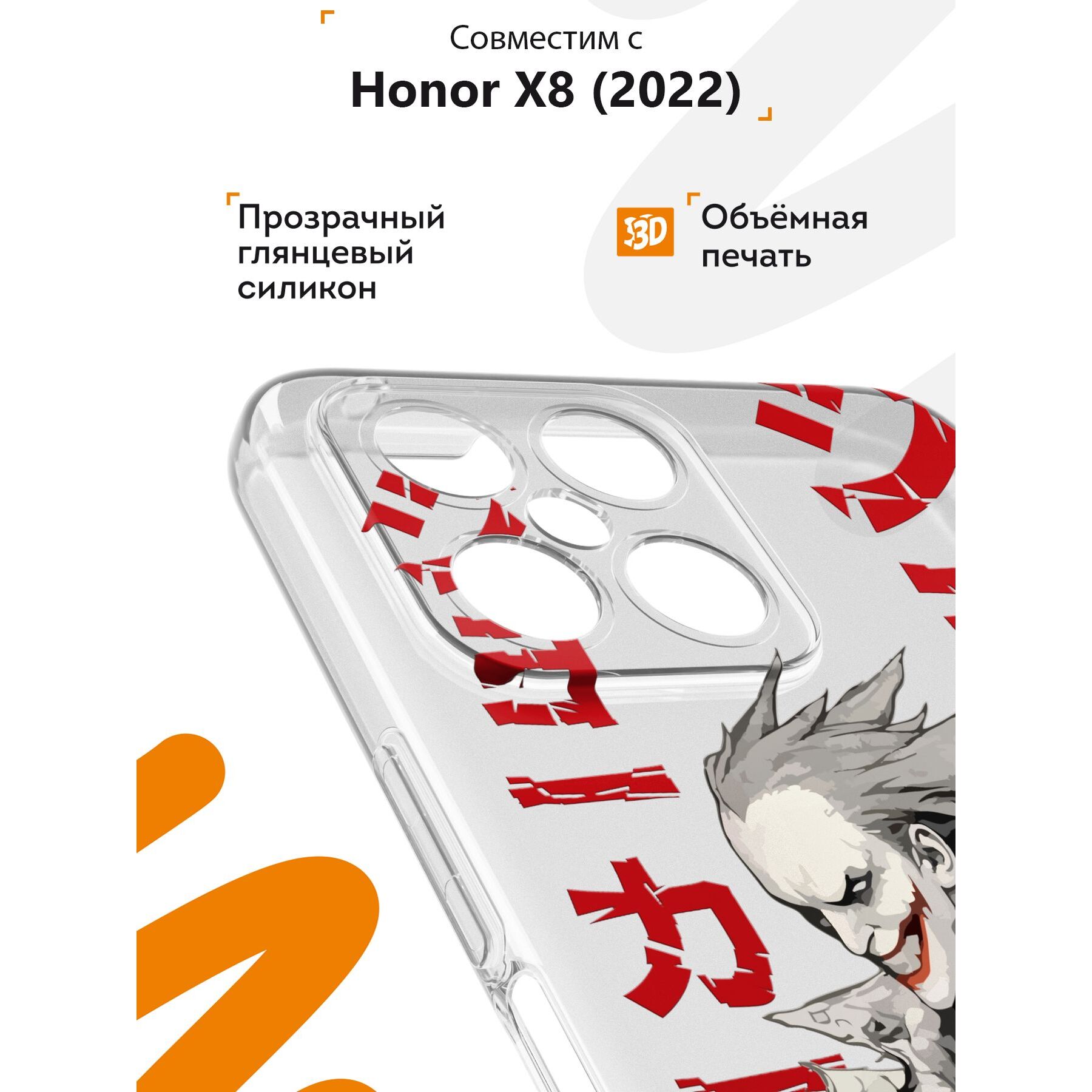 Чехол для смартфона Honor X8 - неотъемлемый аксессуар каждого современного человека. Премиальные износостойкие краски и лаки, качественные материалы изделия, японское оборудование и контроль качества производства - это то, что позволяет нам выгодно выделяться среди конкурентов и производить не только красивые, но тактильно приятные чехлы для Хонор Х8, которые долгое время не теряют первоначального вида.