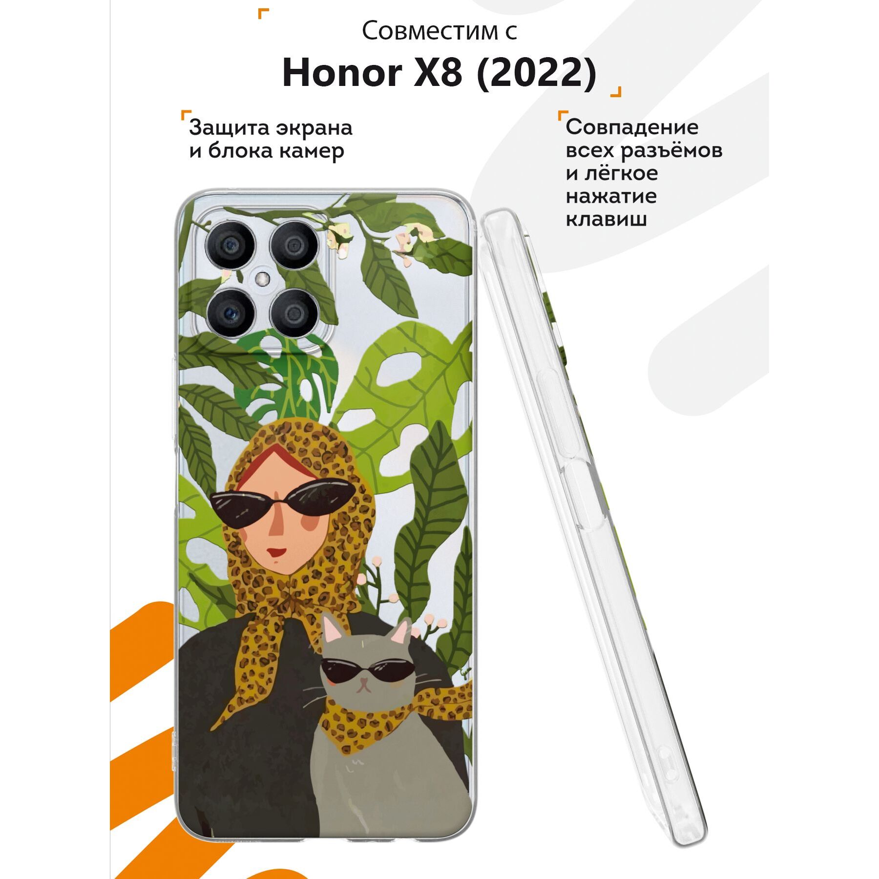 Чехол для смартфона Honor X8 - неотъемлемый аксессуар каждого современного человека. Премиальные износостойкие краски и лаки, качественные материалы изделия, японское оборудование и контроль качества производства - это то, что позволяет нам выгодно выделяться среди конкурентов и производить не только красивые, но тактильно приятные чехлы для Хонор Х8, которые долгое время не теряют первоначального вида.