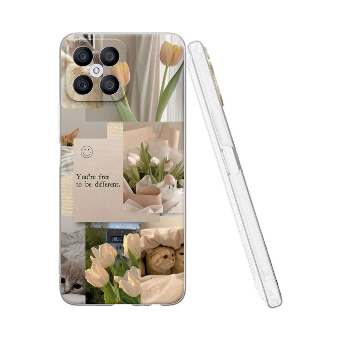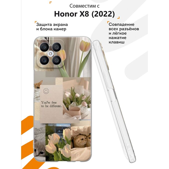 Силиконовый чехол Mcover для Honor X8 (Хонор Х8), Коллаж с тюльпанами