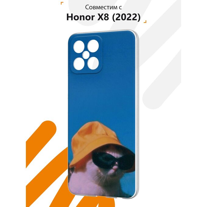 Силиконовый чехол Mcover для Honor X8 (Хонор Х8), Кот в очках и шляпе
