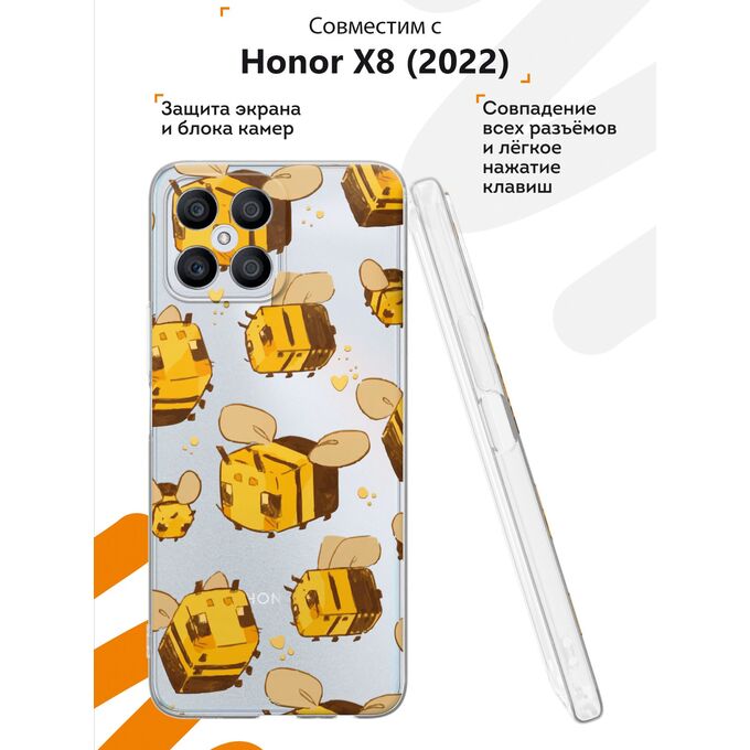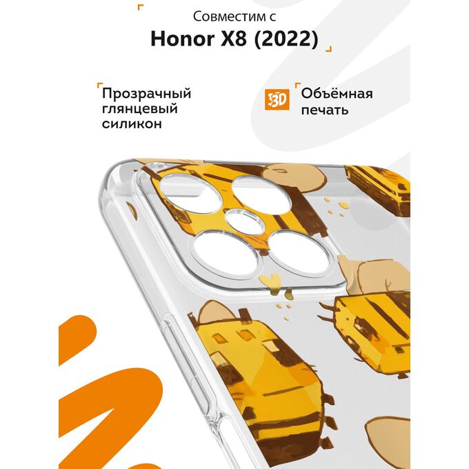 Силиконовый чехол Mcover для Honor X8 (Хонор Х8), Майнкрафт пчелы