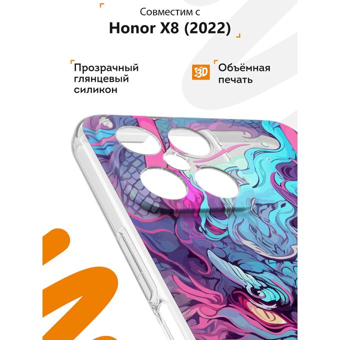 Чехол для смартфона Honor X8 - неотъемлемый аксессуар каждого современного человека. Премиальные износостойкие краски и лаки, качественные материалы изделия, японское оборудование и контроль качества производства - это то, что позволяет нам выгодно выделяться среди конкурентов и производить не только красивые, но тактильно приятные чехлы для Хонор Х8, которые долгое время не теряют первоначального вида.