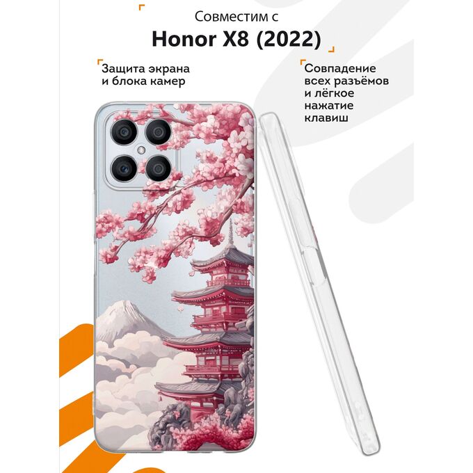 Силиконовый чехол Mcover для Honor X8 (Хонор Х8), Пагода и Фудзи