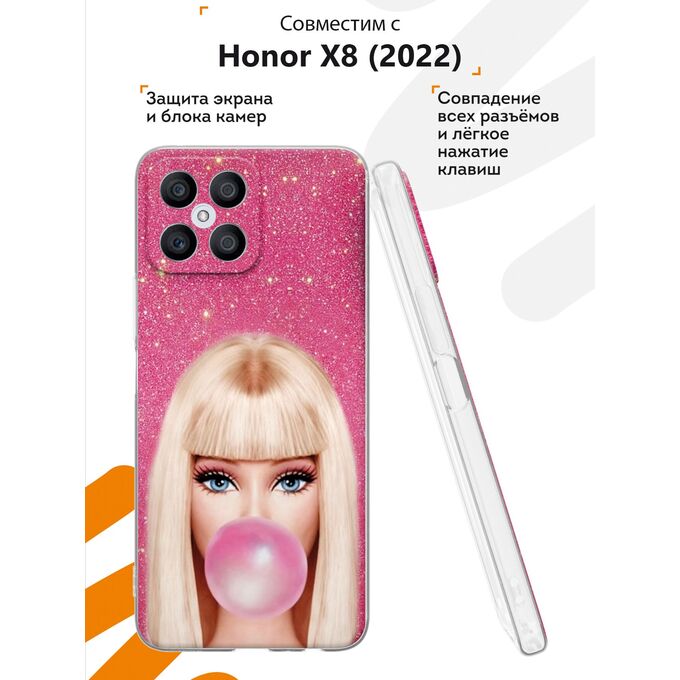 Силиконовый чехол Mcover для Honor X8 (Хонор Х8), с принтом Барби с жвачкой