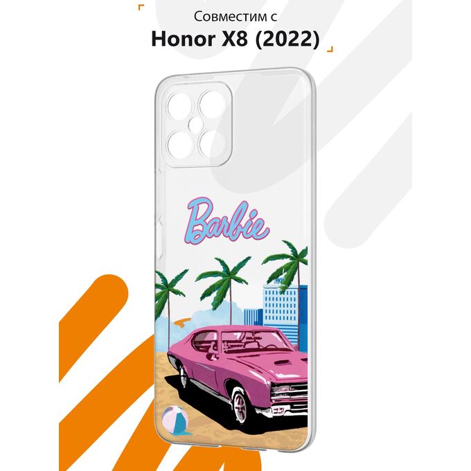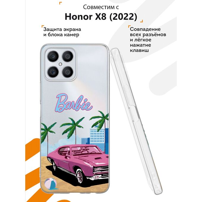 Силиконовый чехол Mcover для Honor X8 (Хонор Х8), с принтом Barbie и машина