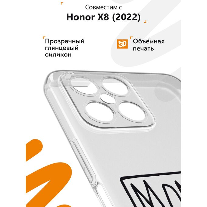 Чехол для смартфона Honor X8 - неотъемлемый аксессуар каждого современного человека. Премиальные износостойкие краски и лаки, качественные материалы изделия, японское оборудование и контроль качества производства - это то, что позволяет нам выгодно выделяться среди конкурентов и производить не только красивые, но тактильно приятные чехлы для Хонор Х8, которые долгое время не теряют первоначального вида.