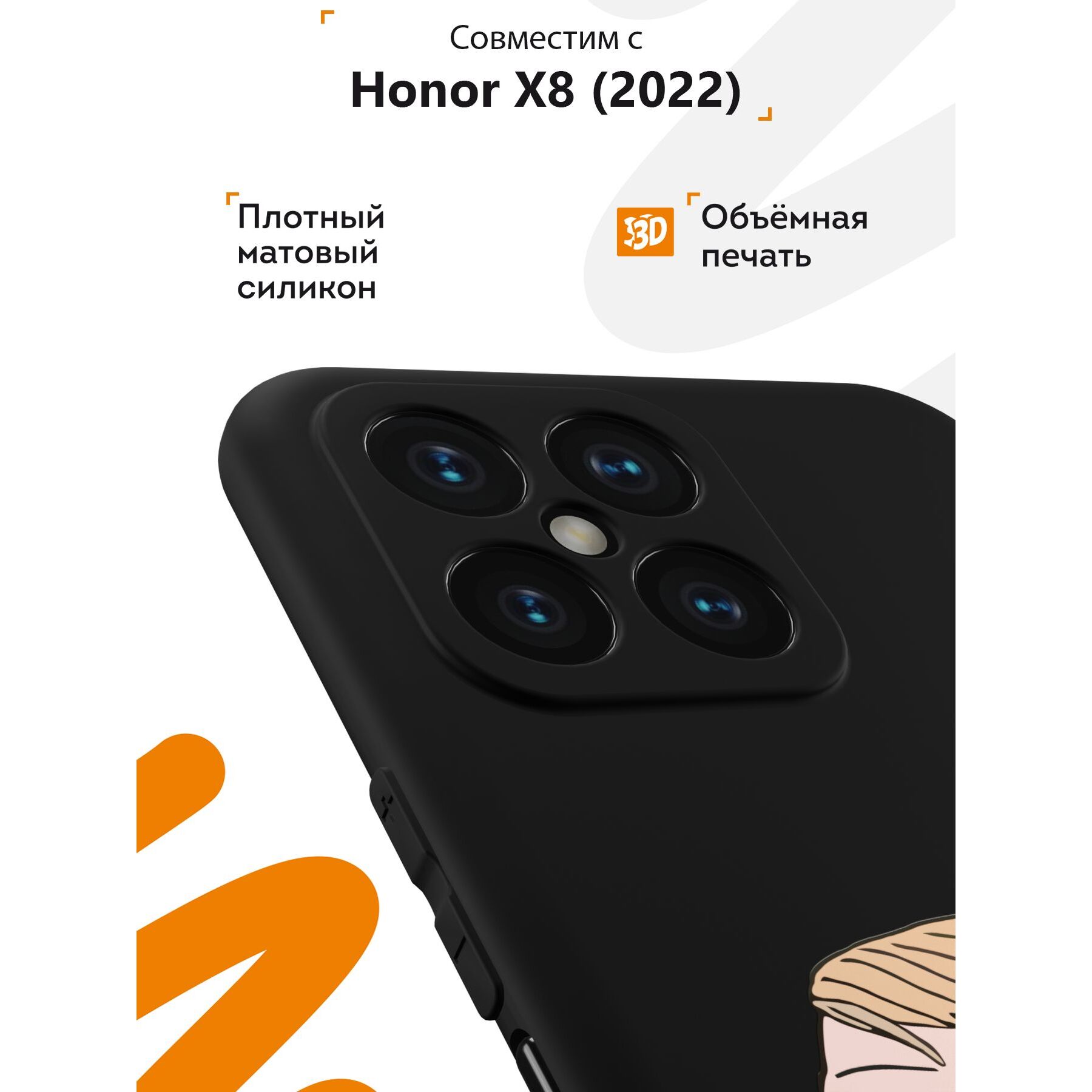 Чехол для смартфона Honor X8 - неотъемлемый аксессуар каждого современного человека. Премиальные износостойкие краски и лаки, качественные материалы изделия, японское оборудование и контроль качества производства - это то, что позволяет нам выгодно выделяться среди конкурентов и производить не только красивые, но тактильно приятные чехлы для Хонор Х8, которые долгое время не теряют первоначального вида.