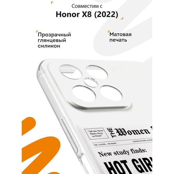 Чехол для смартфона Honor X8 - неотъемлемый аксессуар каждого современного человека. Премиальные износостойкие краски и лаки, качественные материалы изделия, японское оборудование и контроль качества производства - это то, что позволяет нам выгодно выделяться среди конкурентов и производить не только красивые, но тактильно приятные чехлы для Хонор Х8, которые долгое время не теряют первоначального вида.