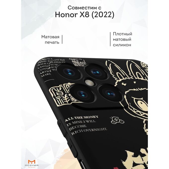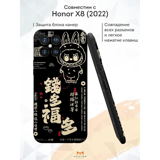Силиконовый чехол Mcover для Honor X8 (Хонор Х8), с принтом Иероглифы и лабубу