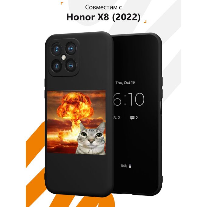 Силиконовый чехол Mcover для Honor X8 (Хонор Х8), с принтом Кот на фоне взрыва