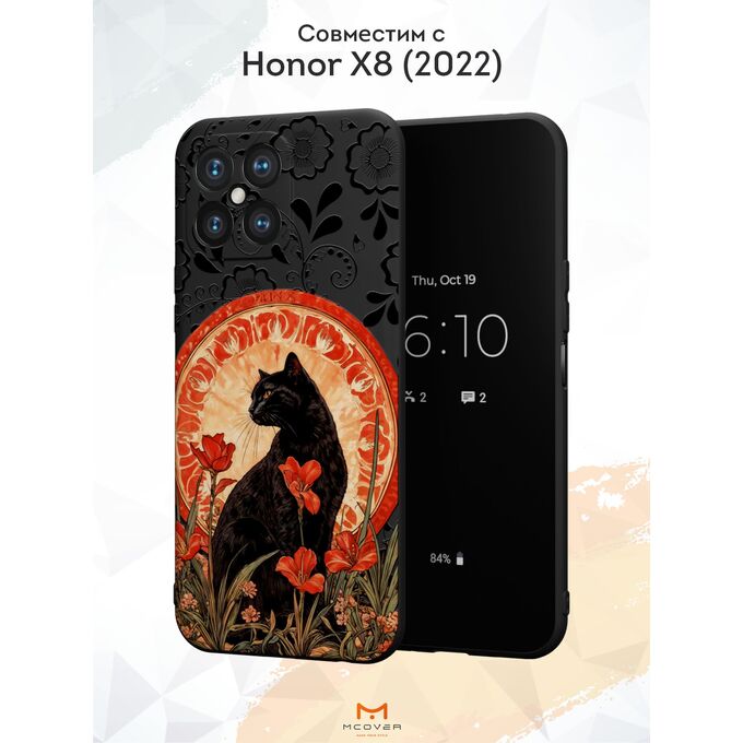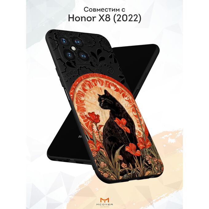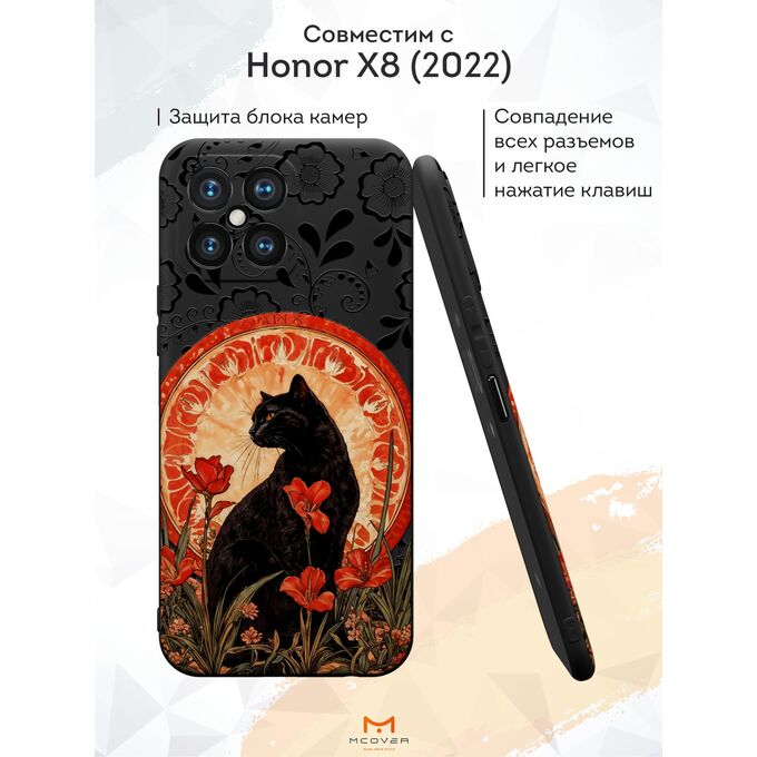 Силиконовый чехол Mcover для Honor X8 (Хонор Х8), с принтом Кот в цветочном поле