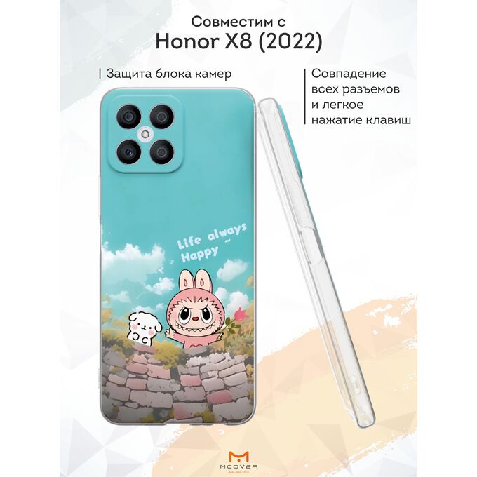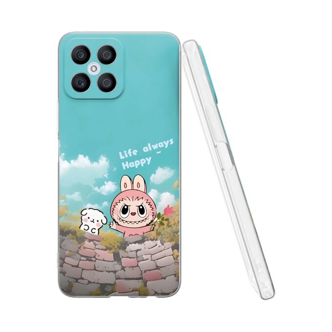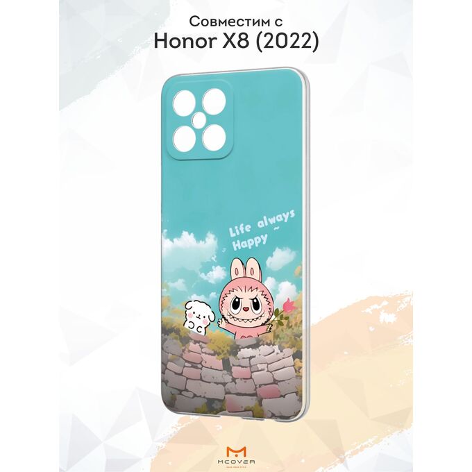 Силиконовый чехол Mcover для Honor X8 (Хонор Х8), с принтом Лабубу и щенок