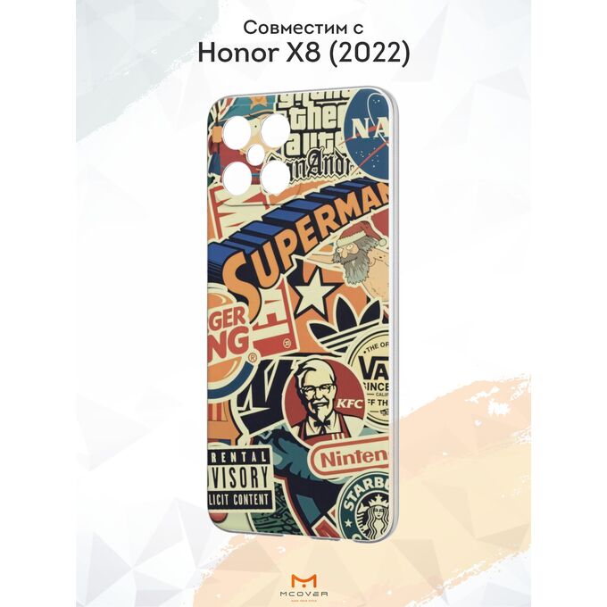 Силиконовый чехол Mcover для Honor X8 (Хонор Х8), с принтом Логотипы