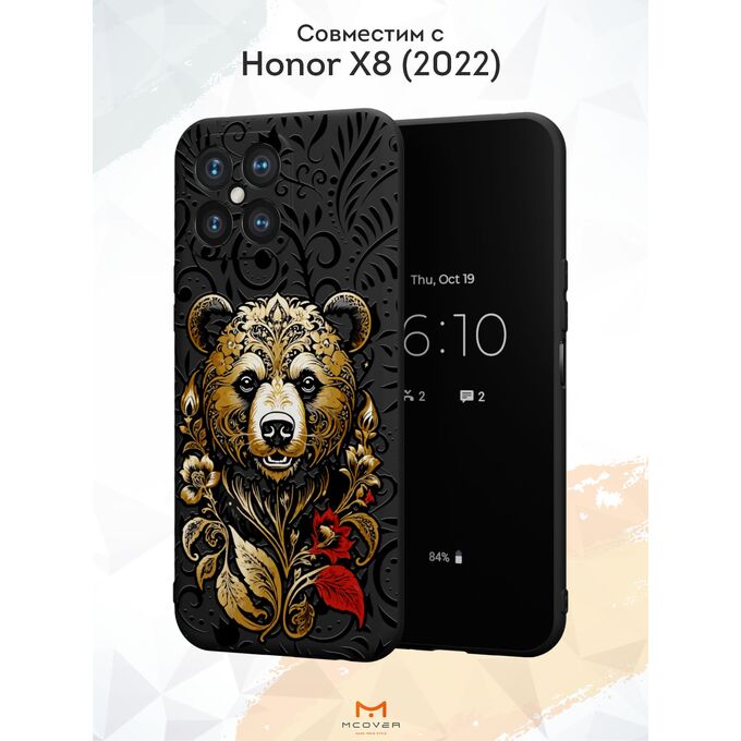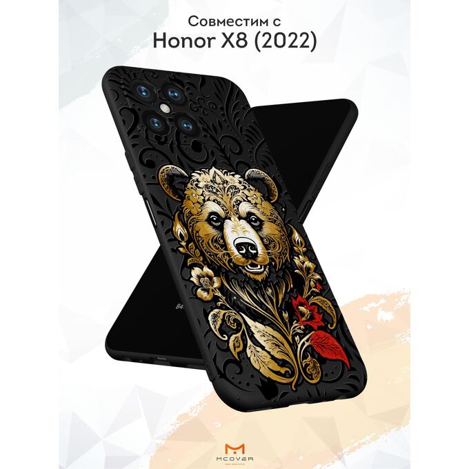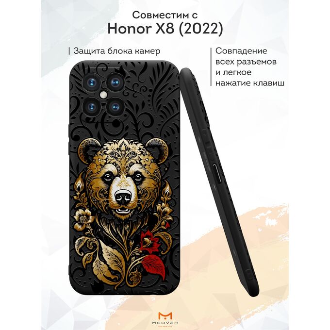 Силиконовый чехол Mcover для Honor X8 (Хонор Х8), с принтом Медведь в русском стиле