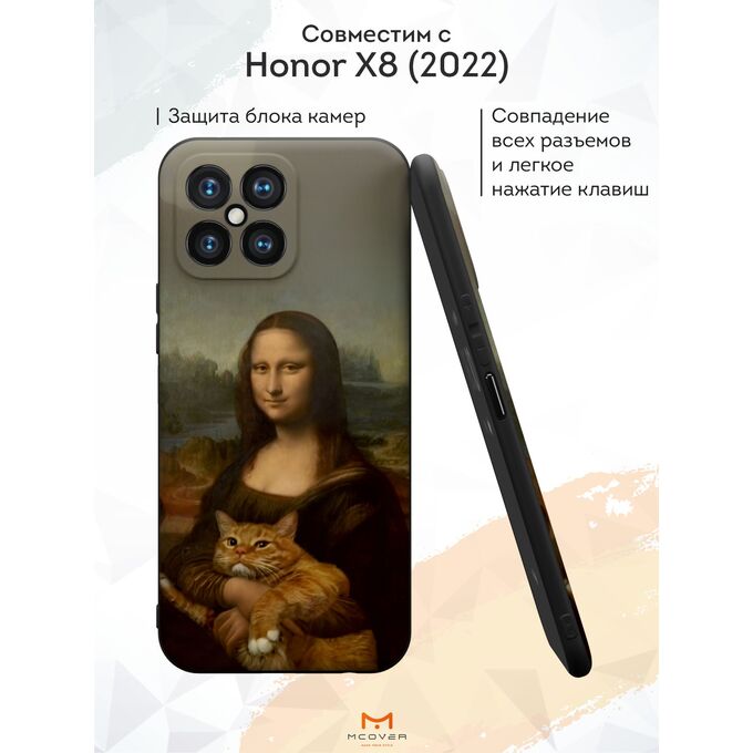 Силиконовый чехол Mcover для Honor X8 (Хонор Х8), с принтом Мона Лиза с котом