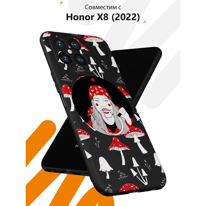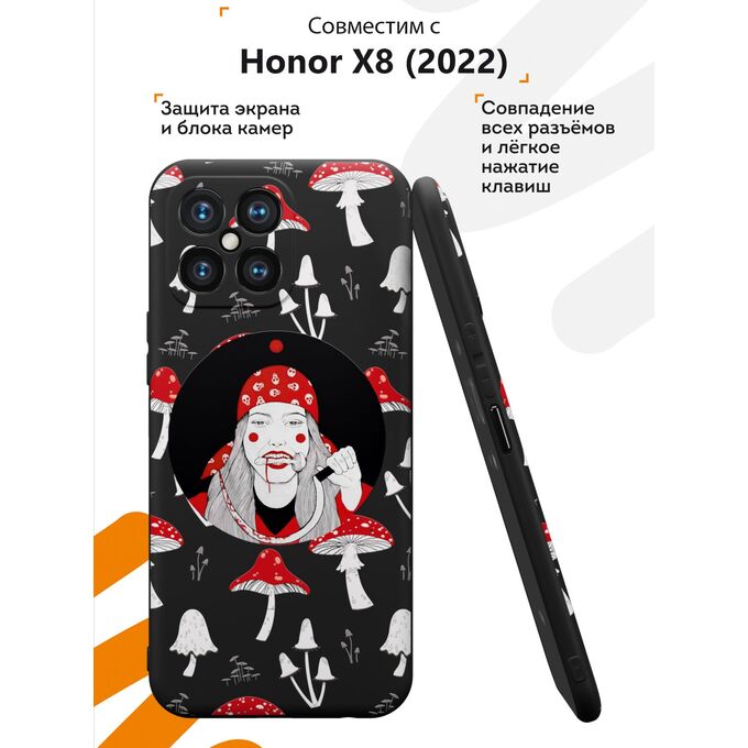 Силиконовый чехол Mcover для Honor X8 (Хонор Х8), с принтом Мухомороедка