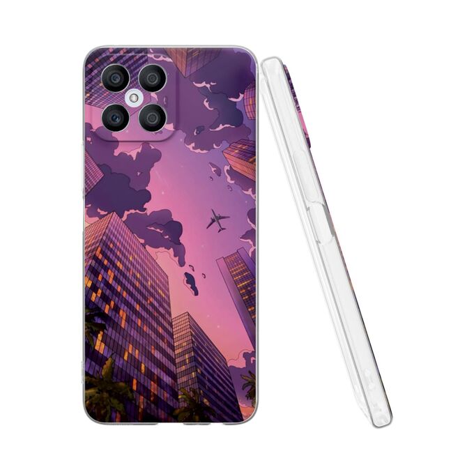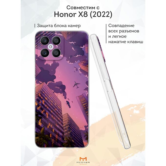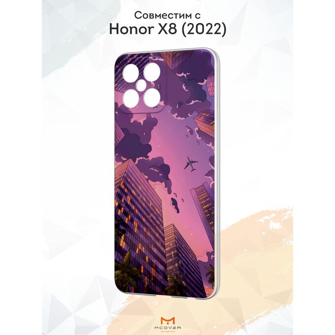 Силиконовый чехол Mcover для Honor X8 (Хонор Х8), с принтом Небоскребы и самолет