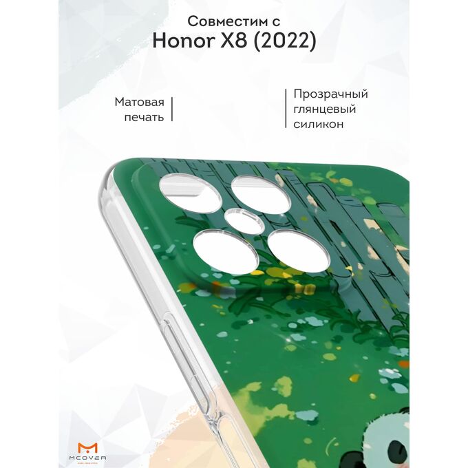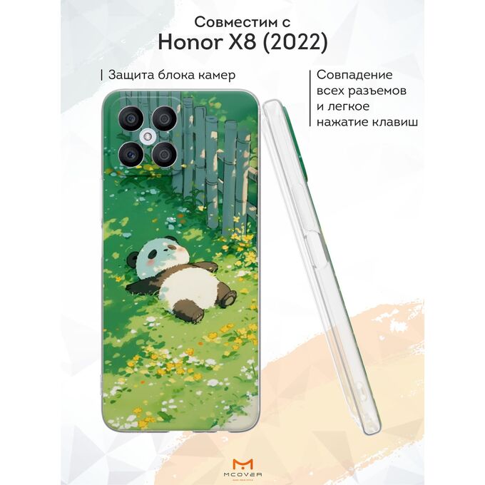 Силиконовый чехол Mcover для Honor X8 (Хонор Х8), с принтом Панда на траве