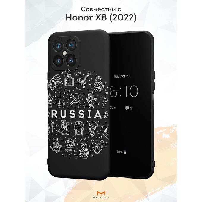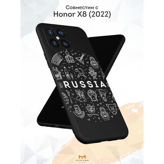 Силиконовый чехол Mcover для Honor X8 (Хонор Х8), с принтом Russia и ее символы