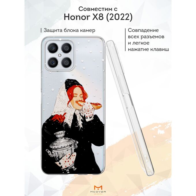 Силиконовый чехол Mcover для Honor X8 (Хонор Х8), с принтом Рыжая девушка с самоваром